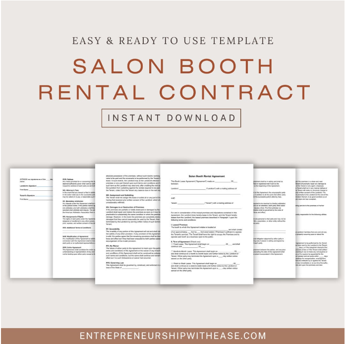 Professional Salon Booth Rental Contract - Editable Docx & PDF Formats | Customizable Agreement for Stylists and Salon Owners